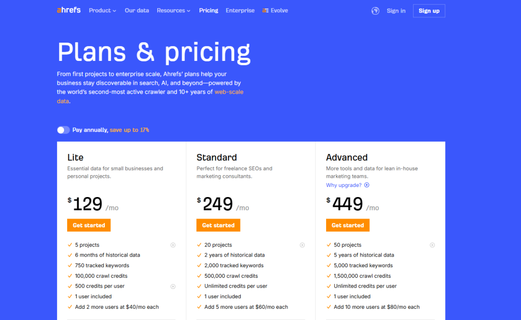 Ahrefs Plan Comparison
